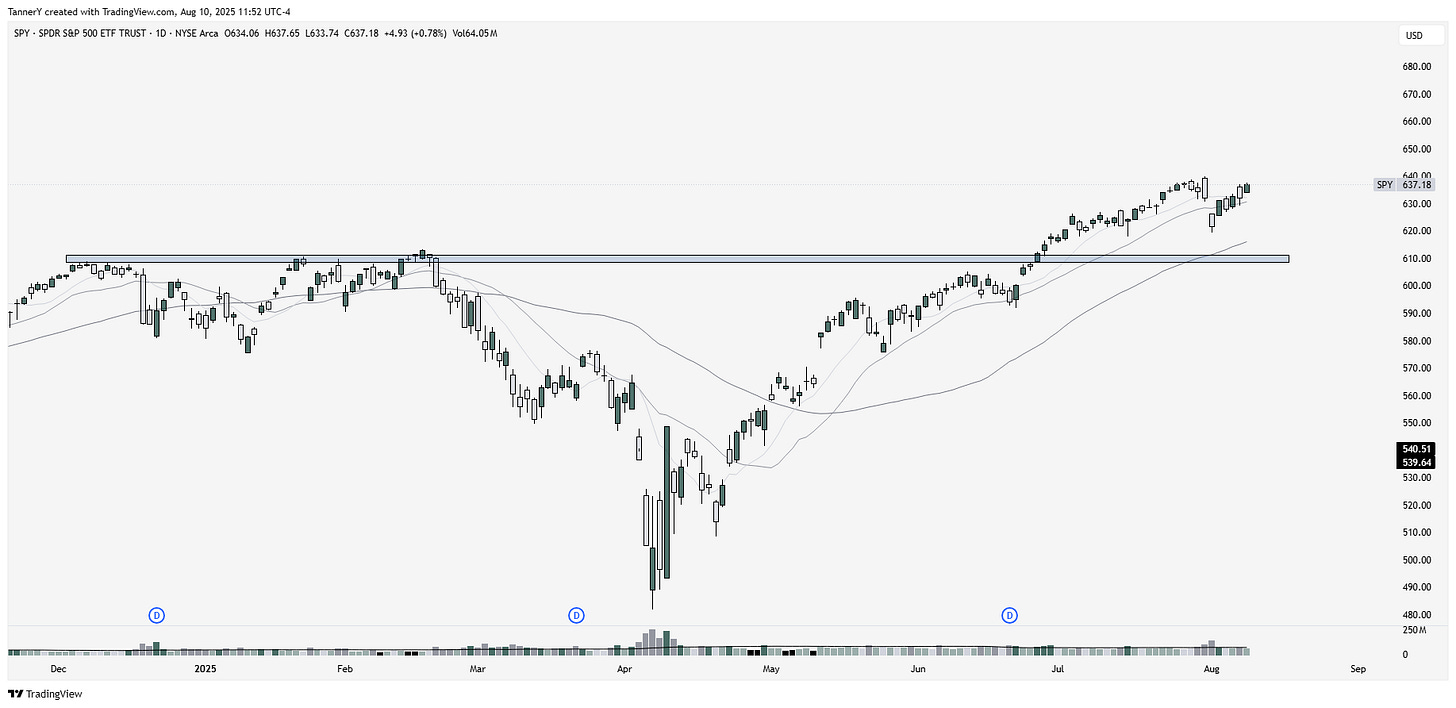 SPY 0.00%↑ up first of course. Not much has changed since my last post here. We reclaimed the 20sma, and are pushing back to highs. Tech focused index QQQ has reclaimed highs, indicating that tech equities are leading the charge, not financials, energy, industrials ect. This checks out, as there is clearly a lot of speculation this earnings season around the premier AI players.