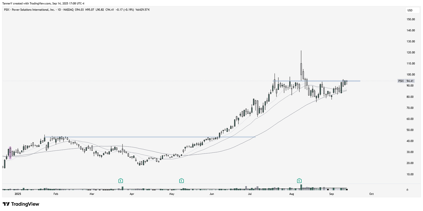 PSIX 0.00%↑ from power systems group, and tangent to datacenters is looking ripe for a move higher after a superb quarterly report in early august. Peers and other notable watches are VRT 0.00%↑ MOD 0.00%↑ TGEN 0.00%↑.