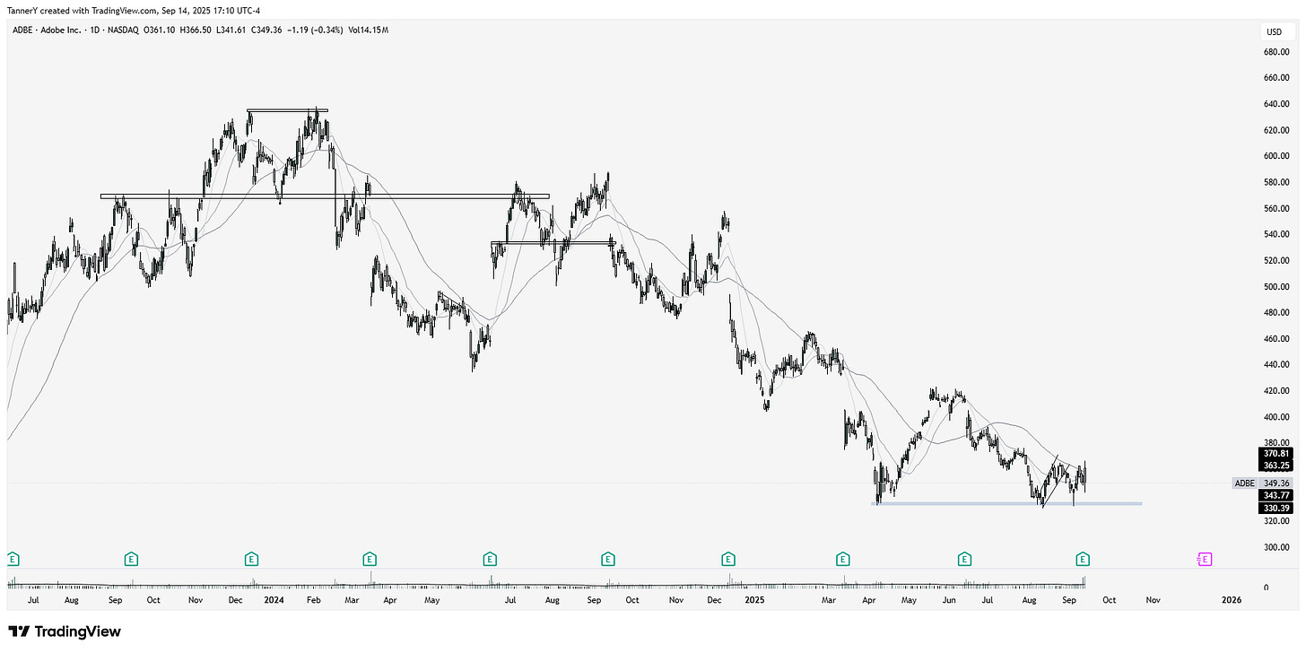 ADBE 0.00%↑ in software tech has been getting a lot of eyes recently, as after this quarter many of their financial metrics are the lowest they’ve ever been, as AI fears mount. Other software names I am focusing on: CDNS 0.00%↑ ORCL 0.00%↑ APP 0.00%↑ NOW 0.00%↑.